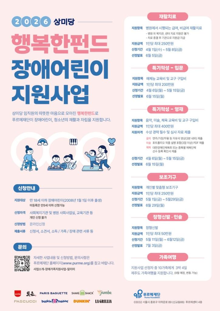 홈복지관소식공지사항복지관소식복지뉴스 복지뉴스 행복한펀드 장애어린이 지원사업 안내 작성자 Admin 작성일 2026-04-09 17:43 조회 18 인쇄 « 제32회 재활수기 공모전 안내 목록보기 답글쓰기 Powered by KBoard