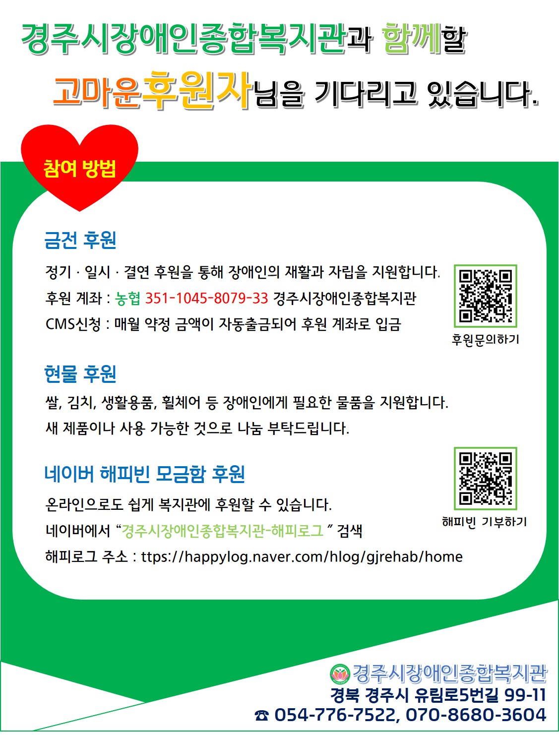 - 후원계좌(예금주: 경주시장애인종합복지관)